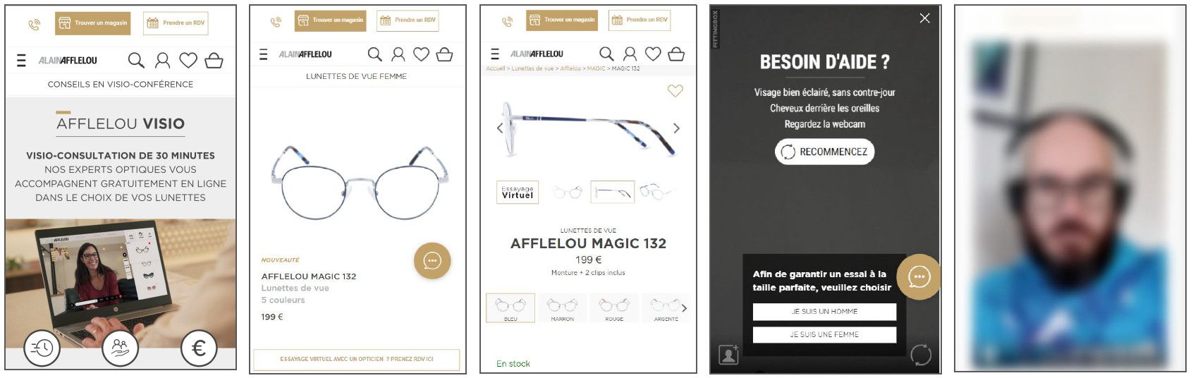 Le site web d’Alain Afflelou propose deux utilisations de la réalité virtuelle : l'utilisation individuelle depuis la fiche produit d'une part et d'autre part dans le cadre d'un rdv en ligne avec un visagiste. Certains utilisateurs confondent les deux options. Il serait donc intéressant de travailler sur la façon dont sont présentés et explicités ces services.